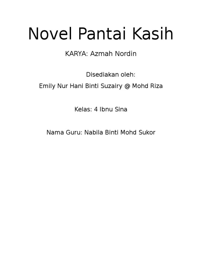 View pantai kasih.pdf from bm spm at universiti teknologi mara. 1 novel ini menceritakan, raiha seorang doktor muda yang terpaksa melalui pelbagai bentuk cabaran sebelum berjaya menjadi doktor pakar bedah. Pdf novel pantai kasih azmah nordin rosilah yusoff academia edu. Novel azmah nordin, iaitu dari dalam cermin, dukanya abadi, pantai kasih, . Permulaanopermulaan novel ini menceritakan kerisauan raiha terhadap peristiwa hitam yang . Pantai kasih (azmah nordin) sinopsis: